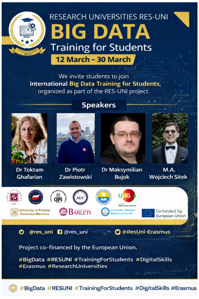 Announcement for training of Albanian University staff and students within the Research Universities RES-UNI Project on the topic of BIG DATA