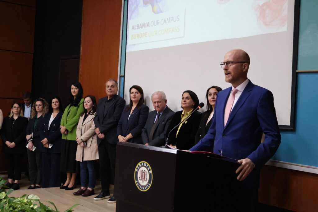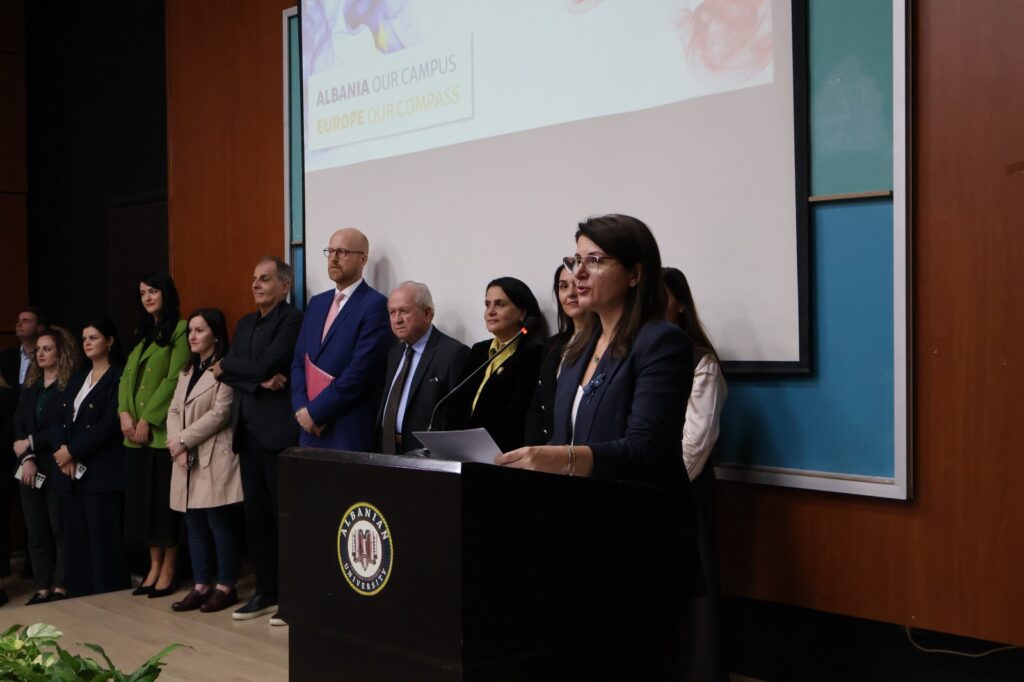 Në fjalën e tij përshëndetëse, Rektori Profesor Julian Fink theksoi se Albanian University është një institucion privat, por me një mision publik.