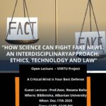 Ju njoftojmë se më 17 Dhjetor, ora 12:00–13:30, në Godinën Qendrore, Bibliotekë, do të zhvillohet sesioni tematik “How Science Can Fight Fake News. An Interdisciplinary Approach: Ethics, Technology and Law” në kuadër të kursit Virtual Exchange for Active Citizens. Ky leksion i hapur do të prezantohet nga Prof. Asoc Rezana…